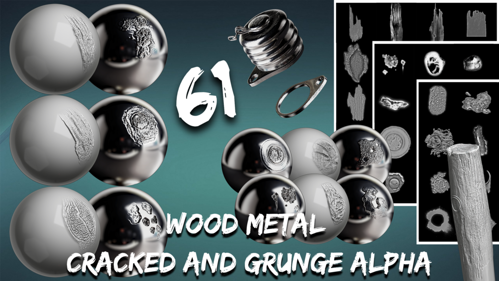 This set of textures contains 61 unique alpha textures for creating chips, cracks and details for materials such as wood and metal.